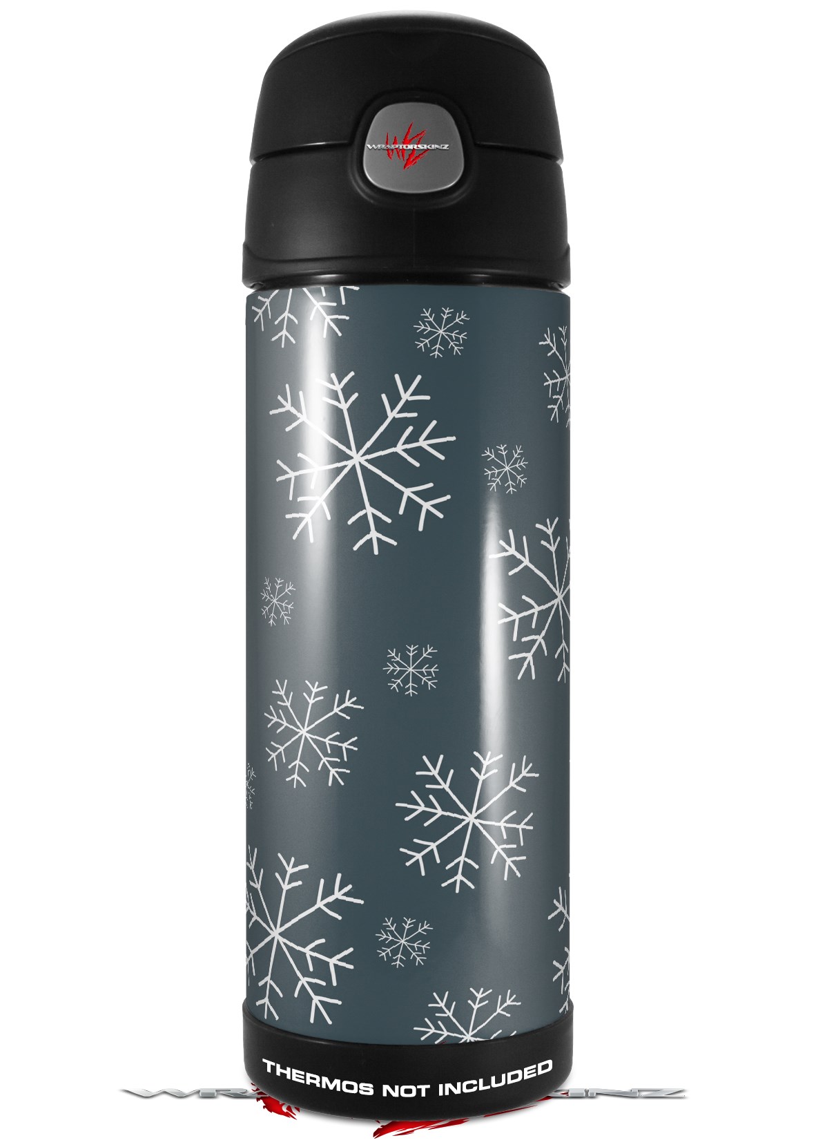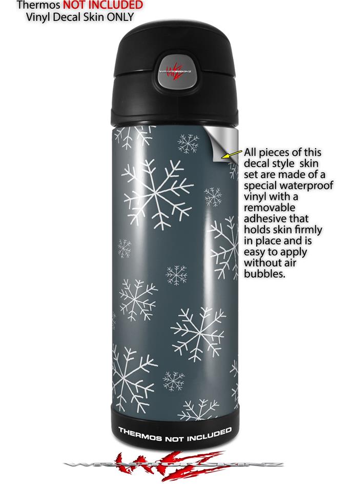Skin Decal Wrap for Thermos Funtainer 16oz Bottle Winter Snow Dark Blue (BOTTLE NOT INCLUDED) by WraptorSkinz