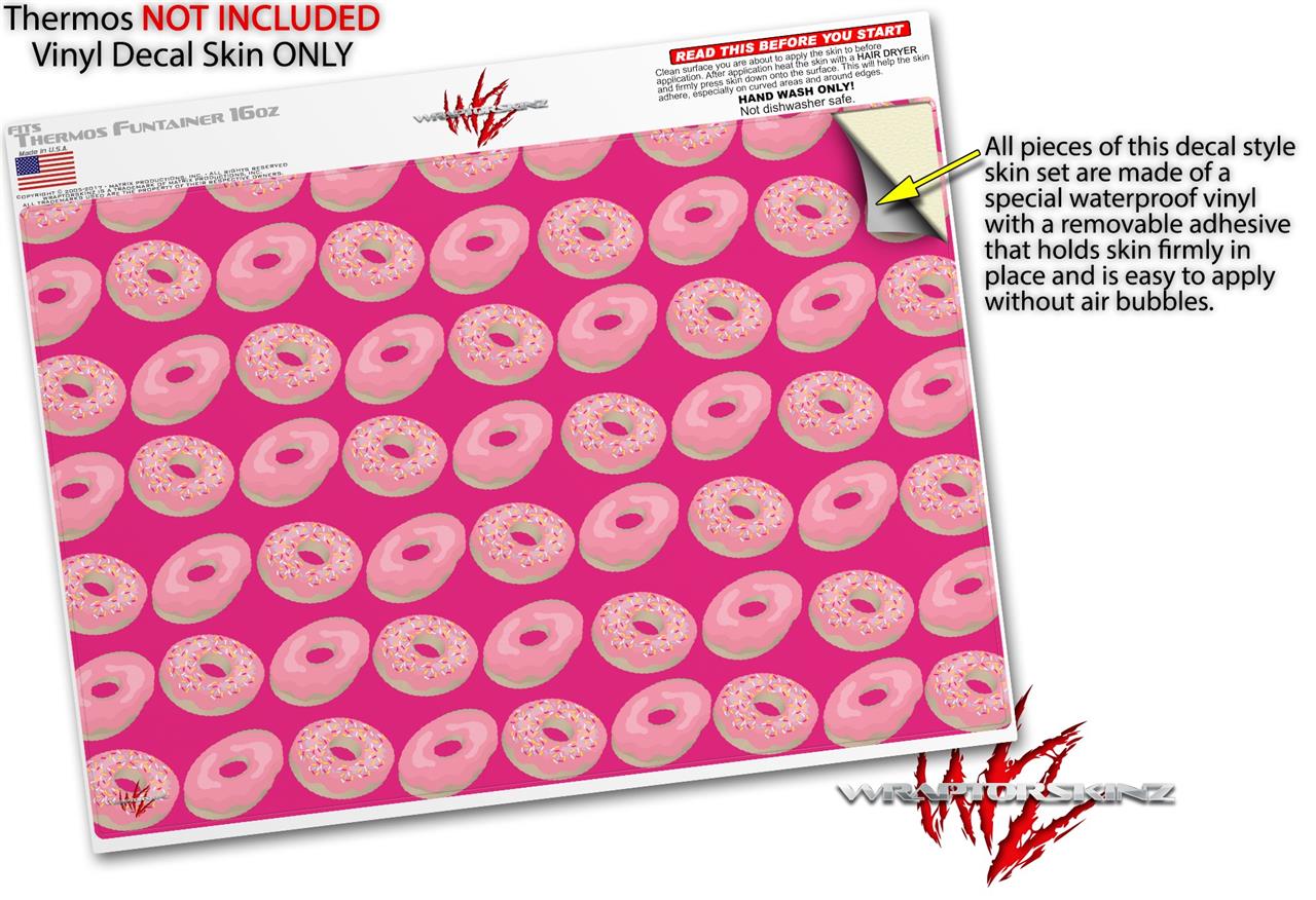 Skin Decal Wrap for Thermos Funtainer 16oz Bottle Donuts Hot Pink Fuchsia (BOTTLE NOT INCLUDED) by WraptorSkinz