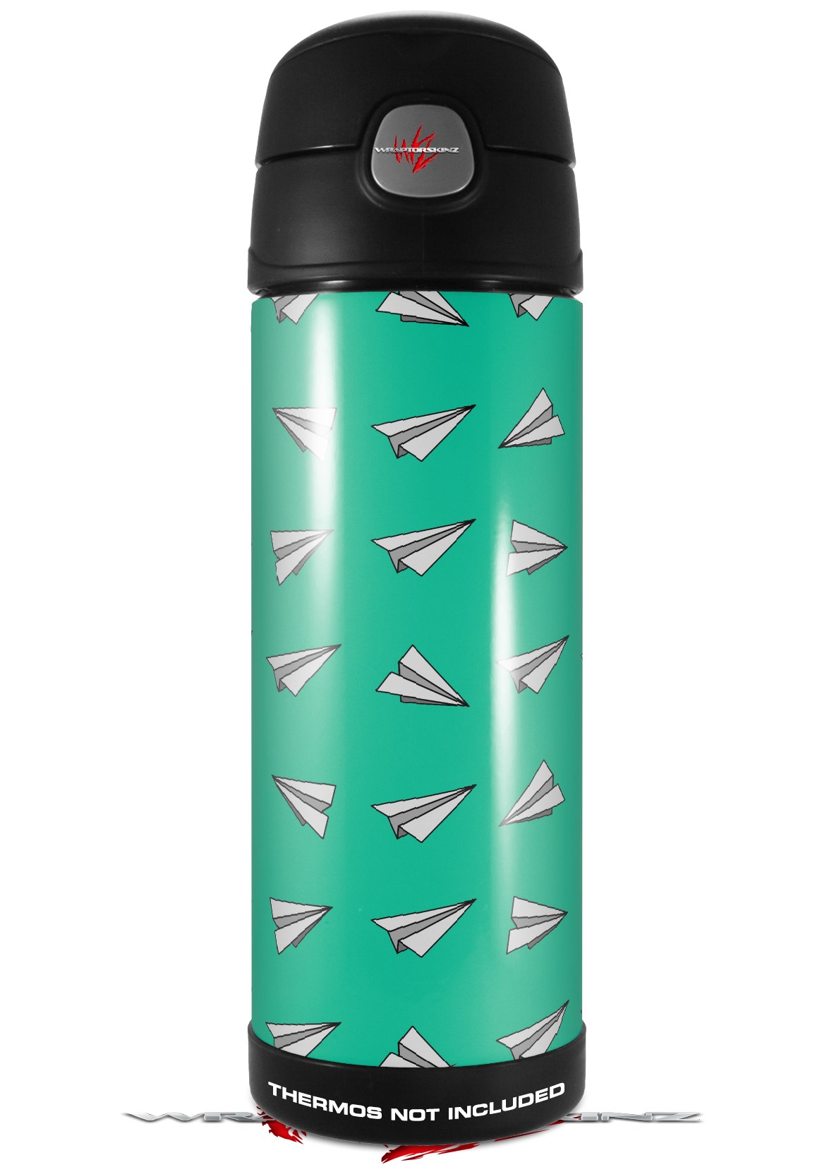 Skin Decal Wrap for Thermos Funtainer 16oz Bottle Paper Planes Turquoise (BOTTLE NOT INCLUDED) by WraptorSkinz