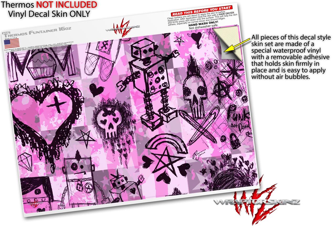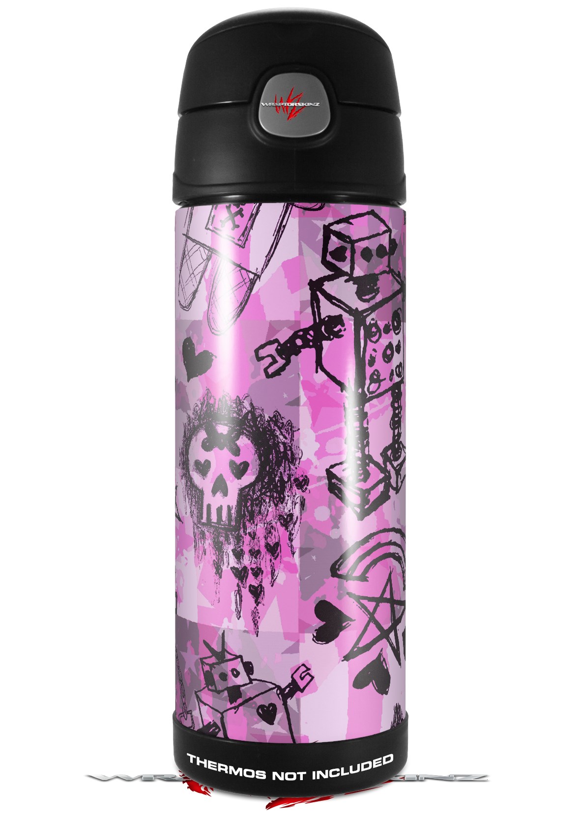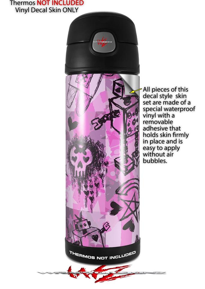 Skin Decal Wrap for Thermos Funtainer 16oz Bottle Scene Kid Sketches Pink (BOTTLE NOT INCLUDED) by WraptorSkinz