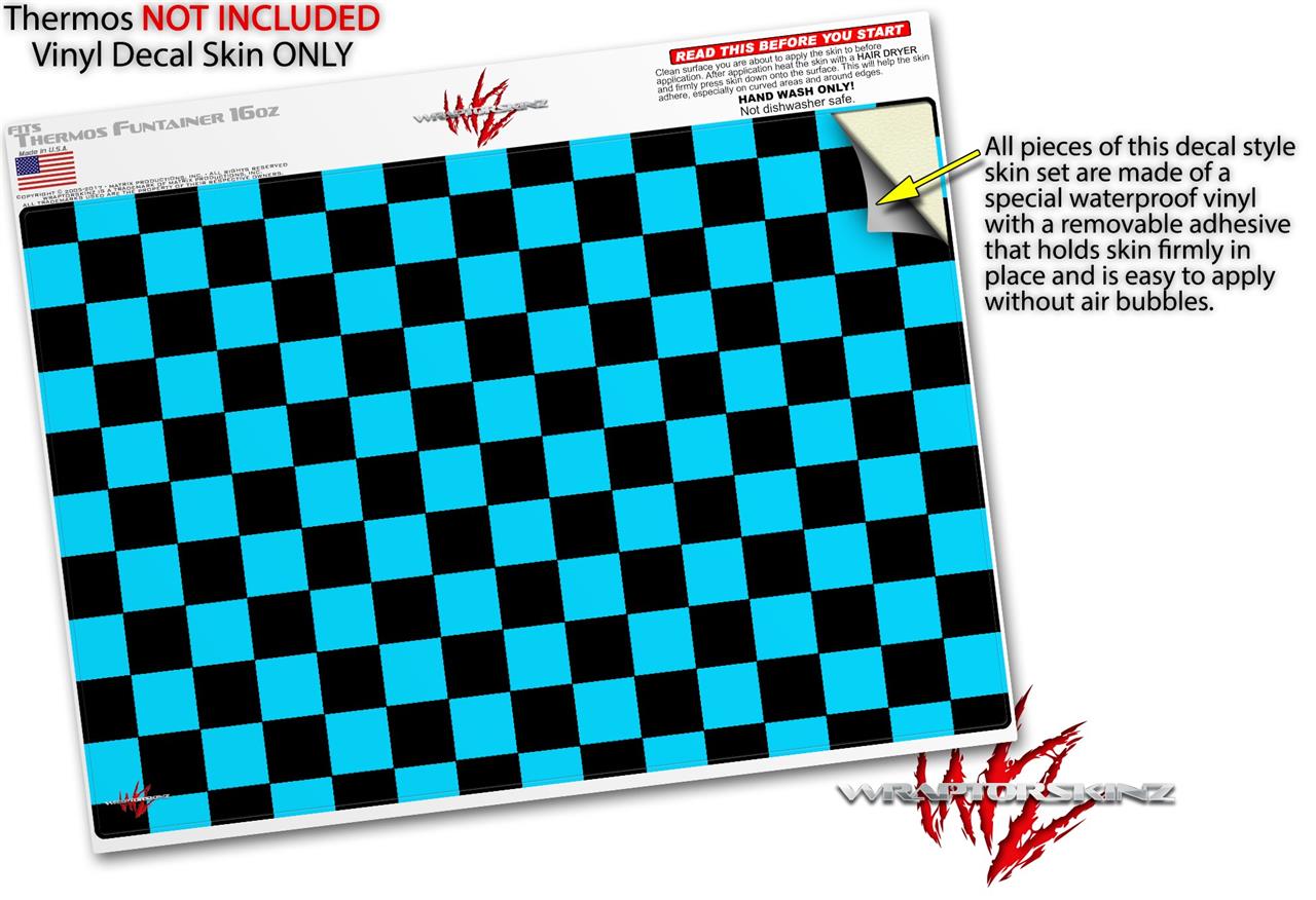 Skin Decal Wrap for Thermos Funtainer 16oz Bottle Checkers Blue (BOTTLE NOT INCLUDED) by WraptorSkinz