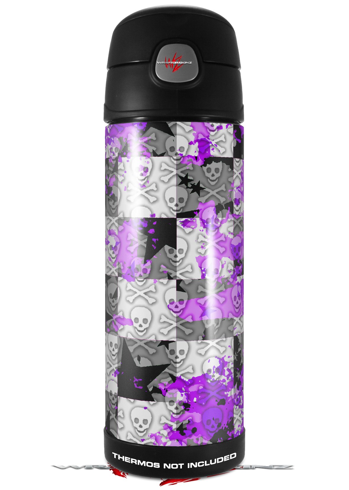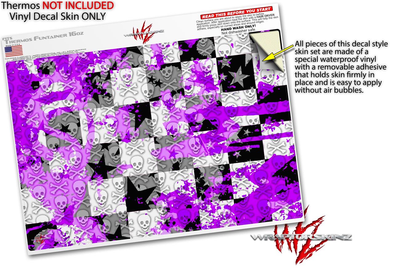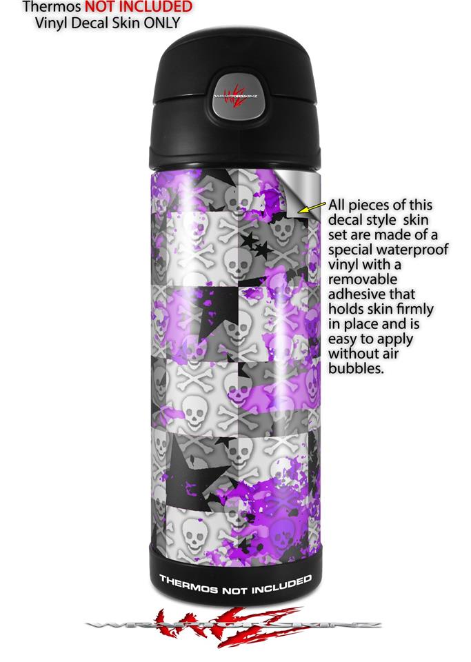 Skin Decal Wrap for Thermos Funtainer 16oz Bottle Purple Checker Skull Splatter (BOTTLE NOT INCLUDED) by WraptorSkinz