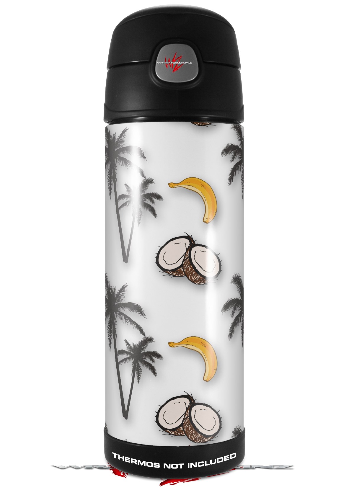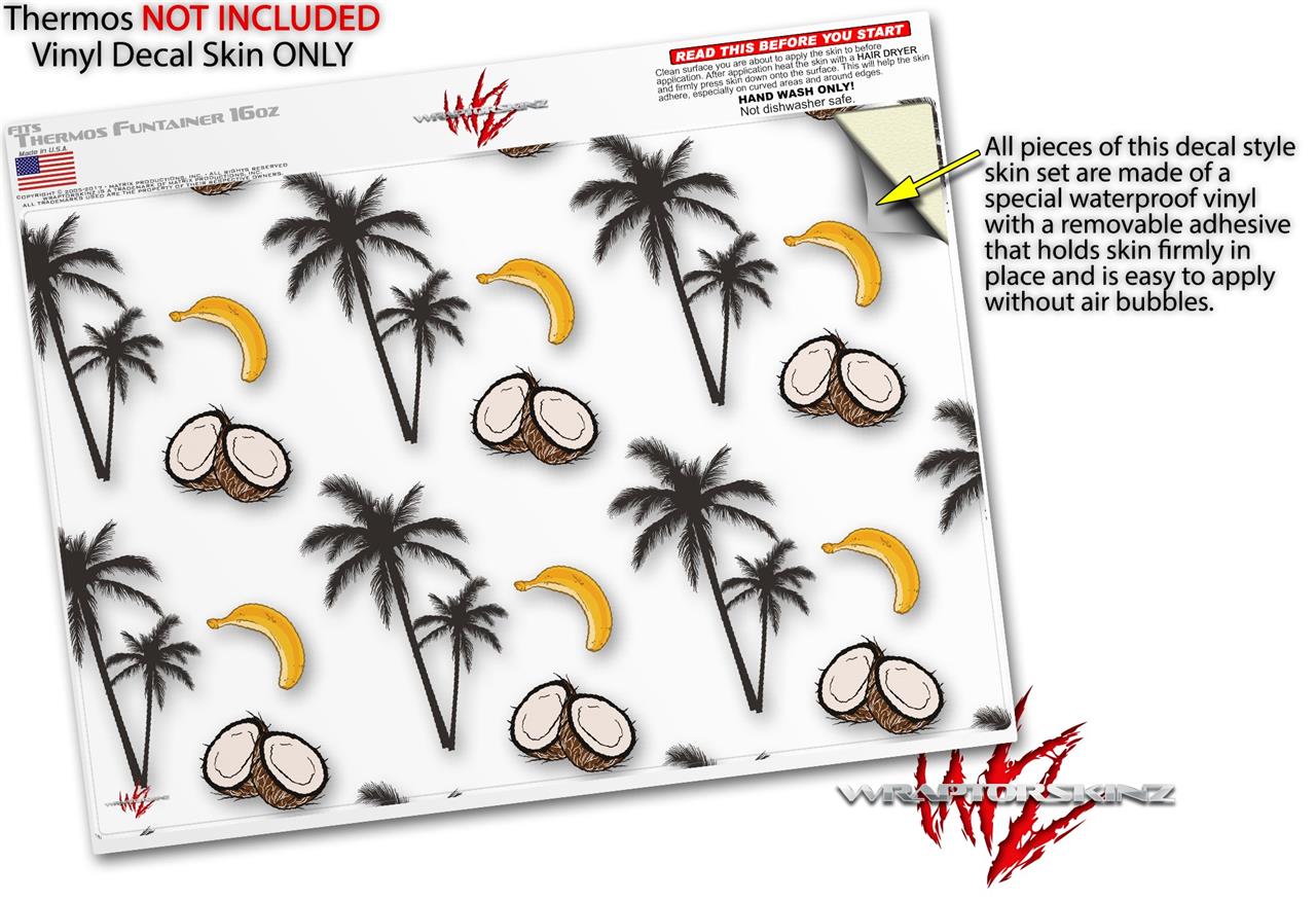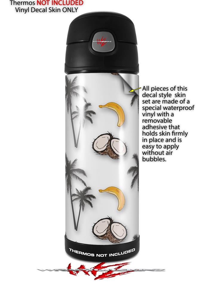 Skin Decal Wrap for Thermos Funtainer 16oz Bottle Coconuts Palm Trees and Bananas White (BOTTLE NOT INCLUDED) by WraptorSkinz