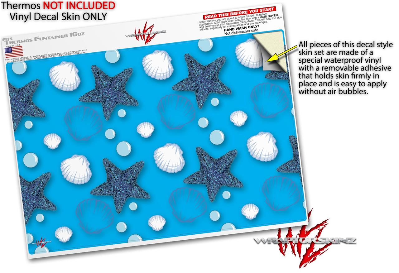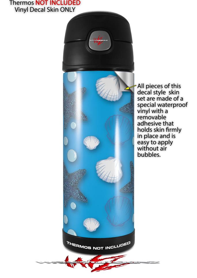 Skin Decal Wrap for Thermos Funtainer 16oz Bottle Starfish and Sea Shells Blue Medium (BOTTLE NOT INCLUDED) by WraptorSkinz