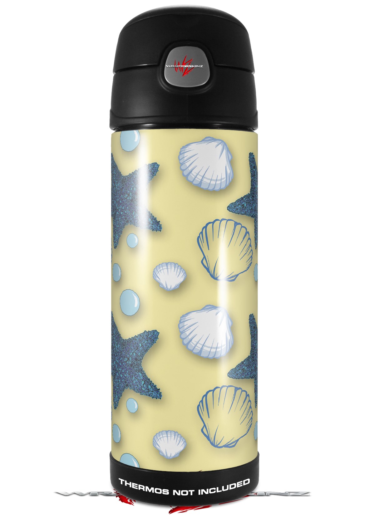 Skin Decal Wrap for Thermos Funtainer 16oz Bottle Starfish and Sea Shells Yellow Sunshine (BOTTLE NOT INCLUDED) by WraptorSkinz