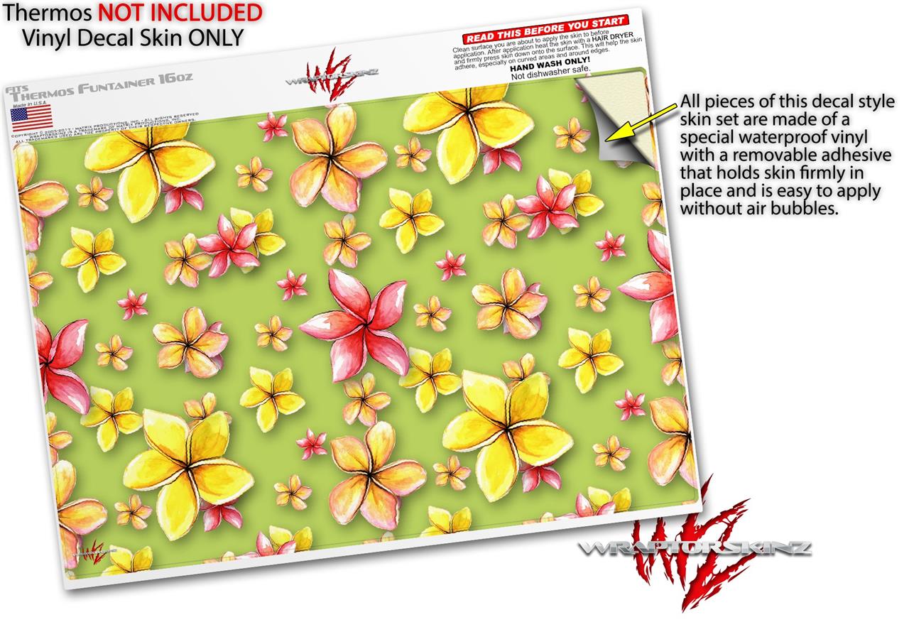 Skin Decal Wrap for Thermos Funtainer 16oz Bottle Beach Flowers Sage Green (BOTTLE NOT INCLUDED) by WraptorSkinz