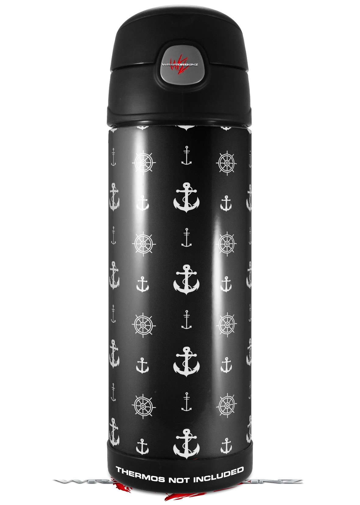 Skin Decal Wrap for Thermos Funtainer 16oz Bottle Nautical Anchors Away 02 Black (BOTTLE NOT INCLUDED) by WraptorSkinz