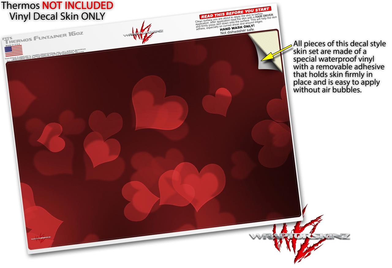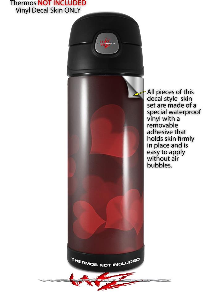 Skin Decal Wrap for Thermos Funtainer 16oz Bottle Bokeh Hearts Red (BOTTLE NOT INCLUDED) by WraptorSkinz