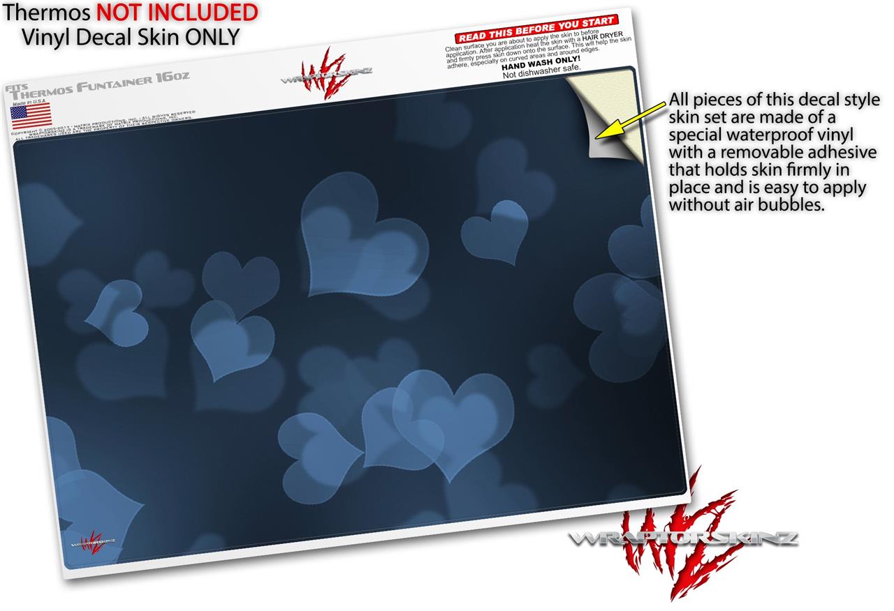 Skin Decal Wrap for Thermos Funtainer 16oz Bottle Bokeh Hearts Blue (BOTTLE NOT INCLUDED) by WraptorSkinz