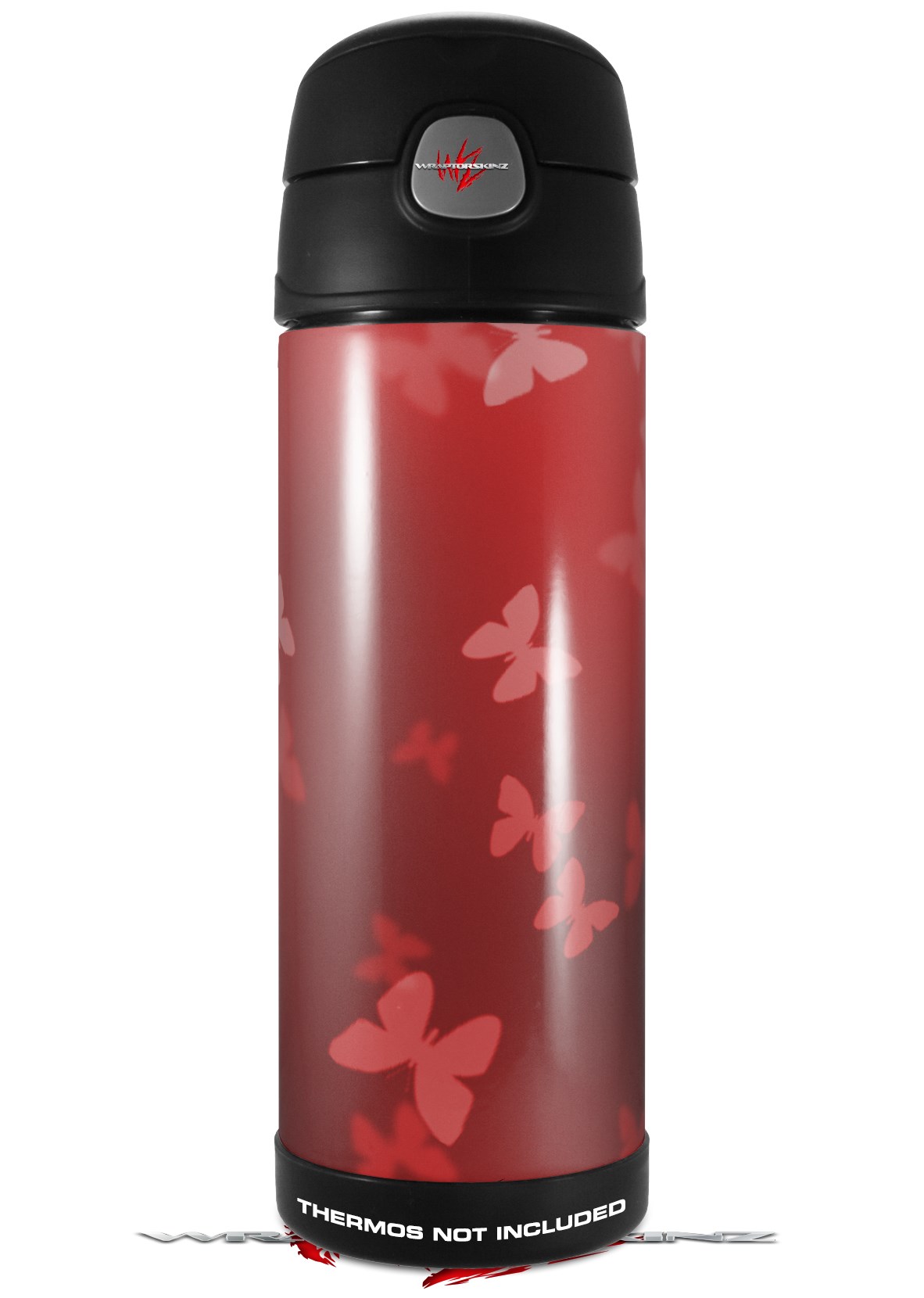Skin Decal Wrap for Thermos Funtainer 16oz Bottle Bokeh Butterflies Red (BOTTLE NOT INCLUDED) by WraptorSkinz