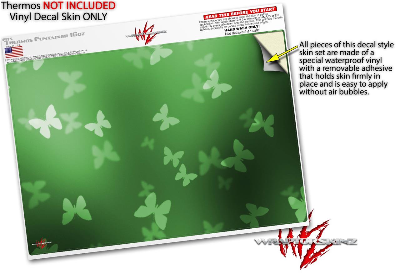 Skin Decal Wrap for Thermos Funtainer 16oz Bottle Bokeh Butterflies Green (BOTTLE NOT INCLUDED) by WraptorSkinz