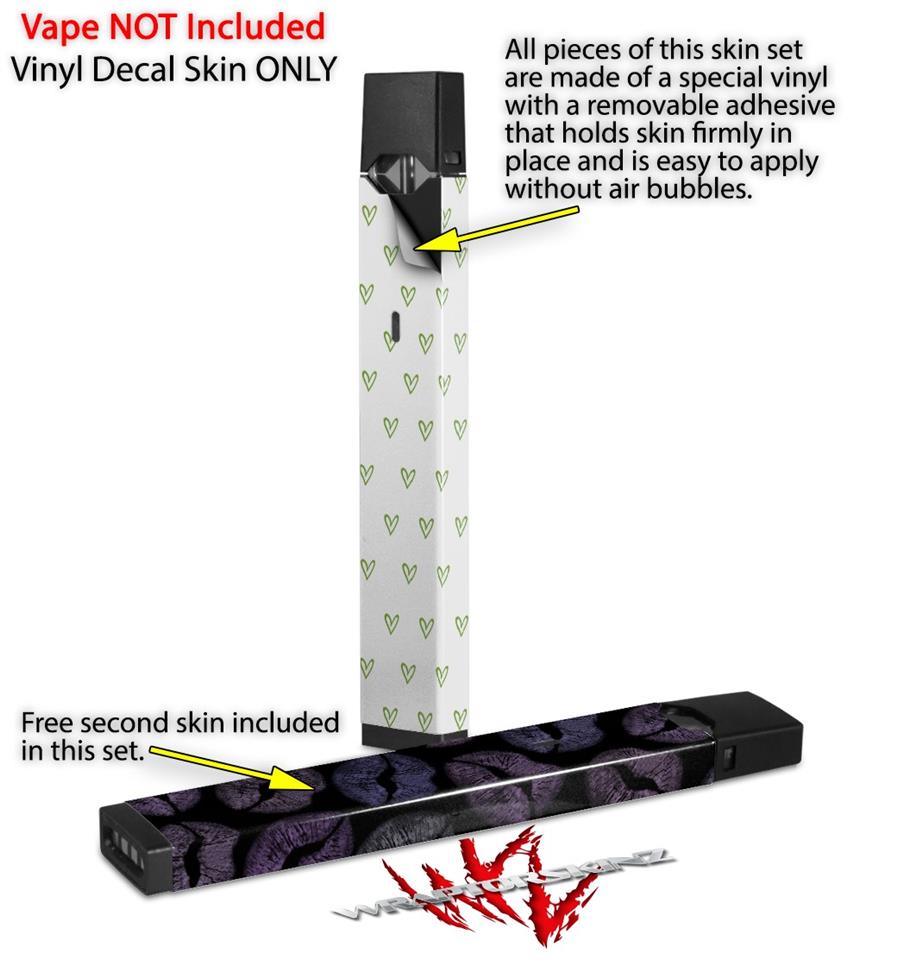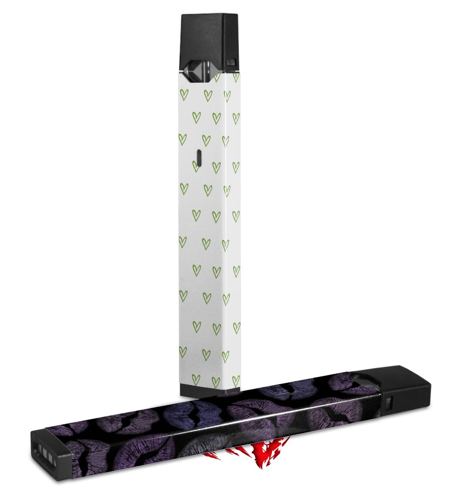 Skin Decal Wrap 2 Pack for Juul Vapes Hearts Green JUUL NOT INCLUDED