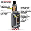 WraptorSkinz® skin wraps are printed using superb photo quality designs and vibrant colors printed with special fade resistant inks that last even in direct sun for years. WraptorSkinz are a composite of two layers of commercial grade materials. The bottom layer is a soft, flexible vinyl with a special removable adhesive that is easily positioned, applied without air bubbles. Next we print the bottom layer with UV protected, fade resistant inks that deliver superb photo quality designs in vibrant colors. Finally we bond a professional grade laminate over the entire skin adding a glossy protective finish. This product is not affiliated with or endorsed by the Smok brand.