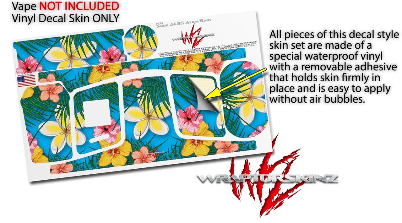 Skin Decal Wrap for Smok AL85 Alien Baby Beach Flowers 02 Blue Medium VAPE NOT INCLUDED