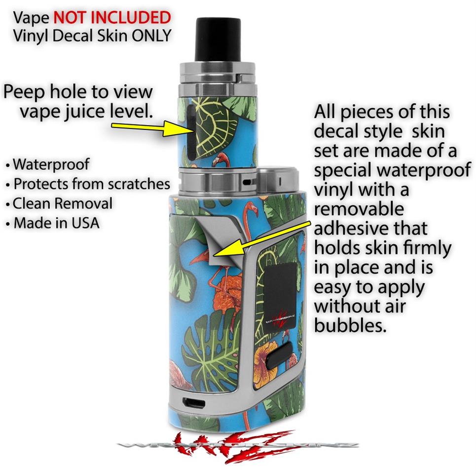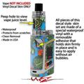 WraptorSkinz® skin wraps are printed using superb photo quality designs and vibrant colors printed with special fade resistant inks that last even in direct sun for years. WraptorSkinz are a composite of two layers of commercial grade materials. The bottom layer is a soft, flexible vinyl with a special removable adhesive that is easily positioned, applied without air bubbles. Next we print the bottom layer with UV protected, fade resistant inks that deliver superb photo quality designs in vibrant colors. Finally we bond a professional grade laminate over the entire skin adding a glossy protective finish. This product is not affiliated with or endorsed by the Smok brand.