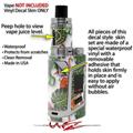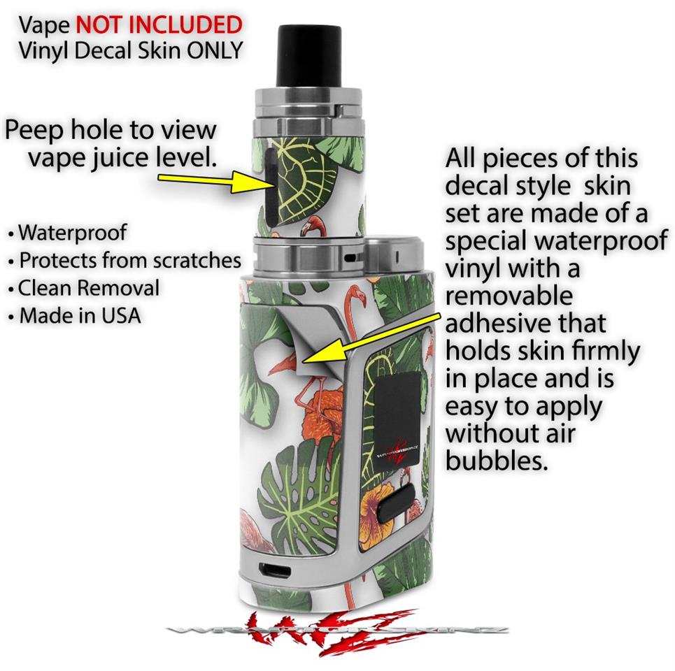 WraptorSkinz® skin wraps are printed using superb photo quality designs and vibrant colors printed with special fade resistant inks that last even in direct sun for years. WraptorSkinz are a composite of two layers of commercial grade materials. The bottom layer is a soft, flexible vinyl with a special removable adhesive that is easily positioned, applied without air bubbles. Next we print the bottom layer with UV protected, fade resistant inks that deliver superb photo quality designs in vibrant colors. Finally we bond a professional grade laminate over the entire skin adding a glossy protective finish. This product is not affiliated with or endorsed by the Smok brand.
