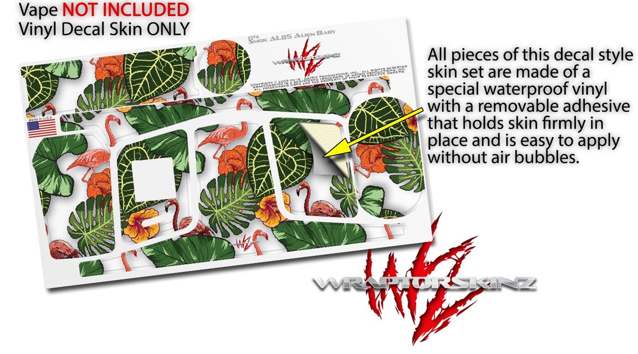 Skin Decal Wrap for Smok AL85 Alien Baby Famingos and Flowers White VAPE NOT INCLUDED