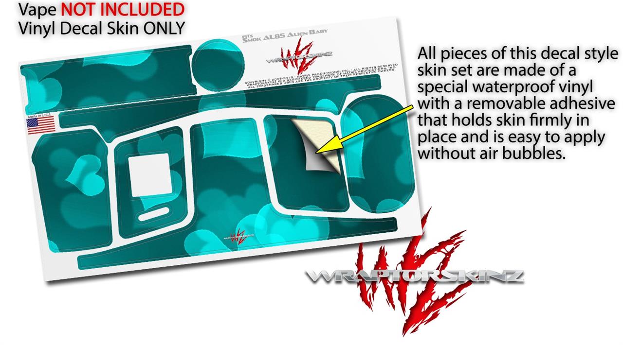 Skin Decal Wrap for Smok AL85 Alien Baby Bokeh Hearts Neon Teal VAPE NOT INCLUDED