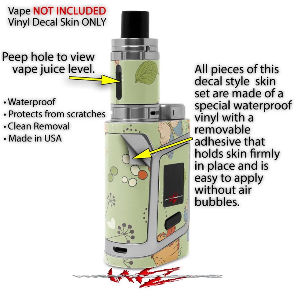 WraptorSkinz® skin wraps are printed using superb photo quality designs and vibrant colors printed with special fade resistant inks that last even in direct sun for years. WraptorSkinz are a composite of two layers of commercial grade materials. The bottom layer is a soft, flexible vinyl with a special removable adhesive that is easily positioned, applied without air bubbles. Next we print the bottom layer with UV protected, fade resistant inks that deliver superb photo quality designs in vibrant colors. Finally we bond a professional grade laminate over the entire skin adding a glossy protective finish. This product is not affiliated with or endorsed by the Smok brand.
