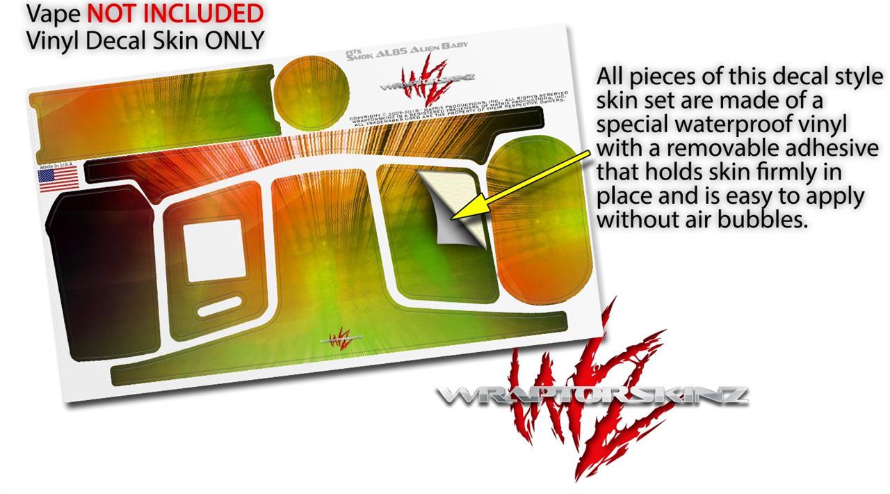 WraptorSkinz® skin wraps are printed using superb photo quality designs and vibrant colors printed with special fade resistant inks that last even in direct sun for years. WraptorSkinz are a composite of two layers of commercial grade materials. The bottom layer is a soft, flexible vinyl with a special removable adhesive that is easily positioned, applied without air bubbles. Next we print the bottom layer with UV protected, fade resistant inks that deliver superb photo quality designs in vibrant colors. Finally we bond a professional grade laminate over the entire skin adding a glossy protective finish. This product is not affiliated with or endorsed by the Smok brand.