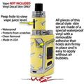 WraptorSkinz® skin wraps are printed using superb photo quality designs and vibrant colors printed with special fade resistant inks that last even in direct sun for years. WraptorSkinz are a composite of two layers of commercial grade materials. The bottom layer is a soft, flexible vinyl with a special removable adhesive that is easily positioned, applied without air bubbles. Next we print the bottom layer with UV protected, fade resistant inks that deliver superb photo quality designs in vibrant colors. Finally we bond a professional grade laminate over the entire skin adding a glossy protective finish. This product is not affiliated with or endorsed by the Smok brand.