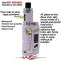 WraptorSkinz® skin wraps are printed using superb photo quality designs and vibrant colors printed with special fade resistant inks that last even in direct sun for years. WraptorSkinz are a composite of two layers of commercial grade materials. The bottom layer is a soft, flexible vinyl with a special removable adhesive that is easily positioned, applied without air bubbles. Next we print the bottom layer with UV protected, fade resistant inks that deliver superb photo quality designs in vibrant colors. Finally we bond a professional grade laminate over the entire skin adding a glossy protective finish. This product is not affiliated with or endorsed by the Smok brand.