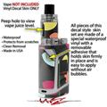 WraptorSkinz® skin wraps are printed using superb photo quality designs and vibrant colors printed with special fade resistant inks that last even in direct sun for years. WraptorSkinz are a composite of two layers of commercial grade materials. The bottom layer is a soft, flexible vinyl with a special removable adhesive that is easily positioned, applied without air bubbles. Next we print the bottom layer with UV protected, fade resistant inks that deliver superb photo quality designs in vibrant colors. Finally we bond a professional grade laminate over the entire skin adding a glossy protective finish. This product is not affiliated with or endorsed by the Smok brand.
