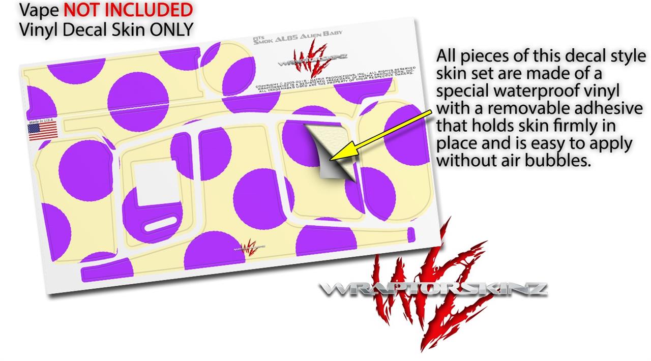 Skin Decal Wrap for Smok AL85 Alien Baby Kearas Polka Dots Purple On Cream VAPE NOT INCLUDED