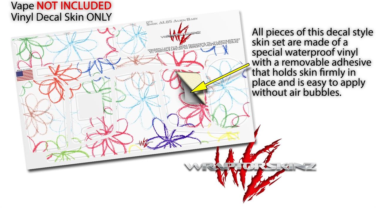 Skin Decal Wrap for Smok AL85 Alien Baby Kearas Flowers on White VAPE NOT INCLUDED