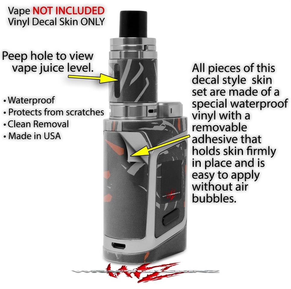WraptorSkinz® skin wraps are printed using superb photo quality designs and vibrant colors printed with special fade resistant inks that last even in direct sun for years. WraptorSkinz are a composite of two layers of commercial grade materials. The bottom layer is a soft, flexible vinyl with a special removable adhesive that is easily positioned, applied without air bubbles. Next we print the bottom layer with UV protected, fade resistant inks that deliver superb photo quality designs in vibrant colors. Finally we bond a professional grade laminate over the entire skin adding a glossy protective finish. This product is not affiliated with or endorsed by the Smok brand.
