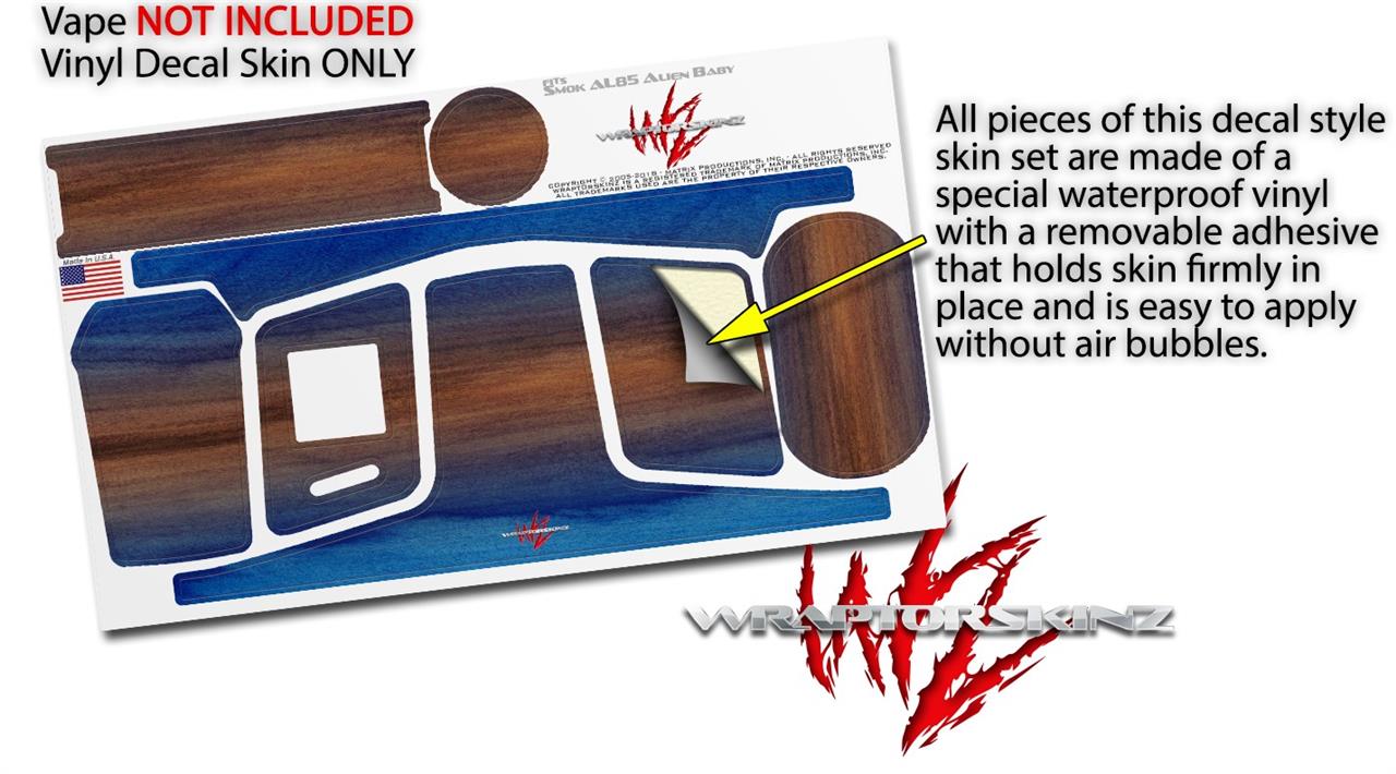 Skin Decal Wrap for Smok AL85 Alien Baby Exotic Wood Rosewood Burst Neon Blue VAPE NOT INCLUDED