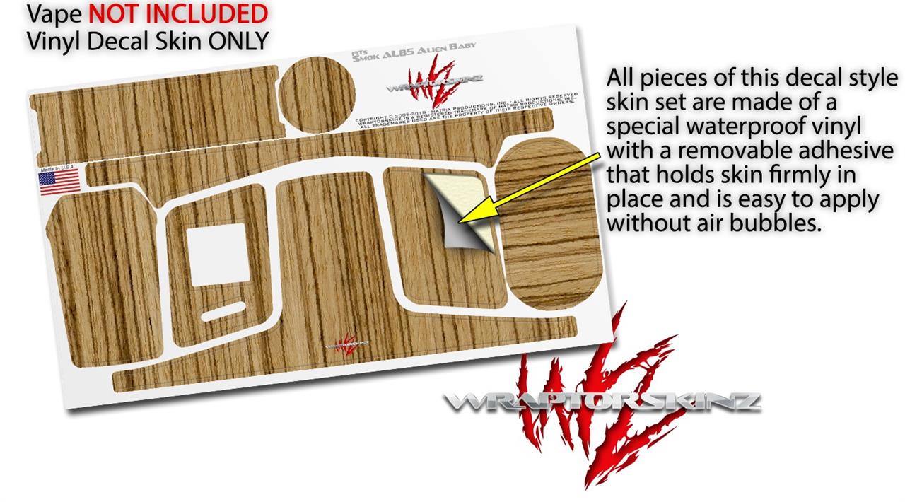 Skin Decal Wrap for Smok AL85 Alien Baby Exotic Wood Zebra Wood Vertical VAPE NOT INCLUDED
