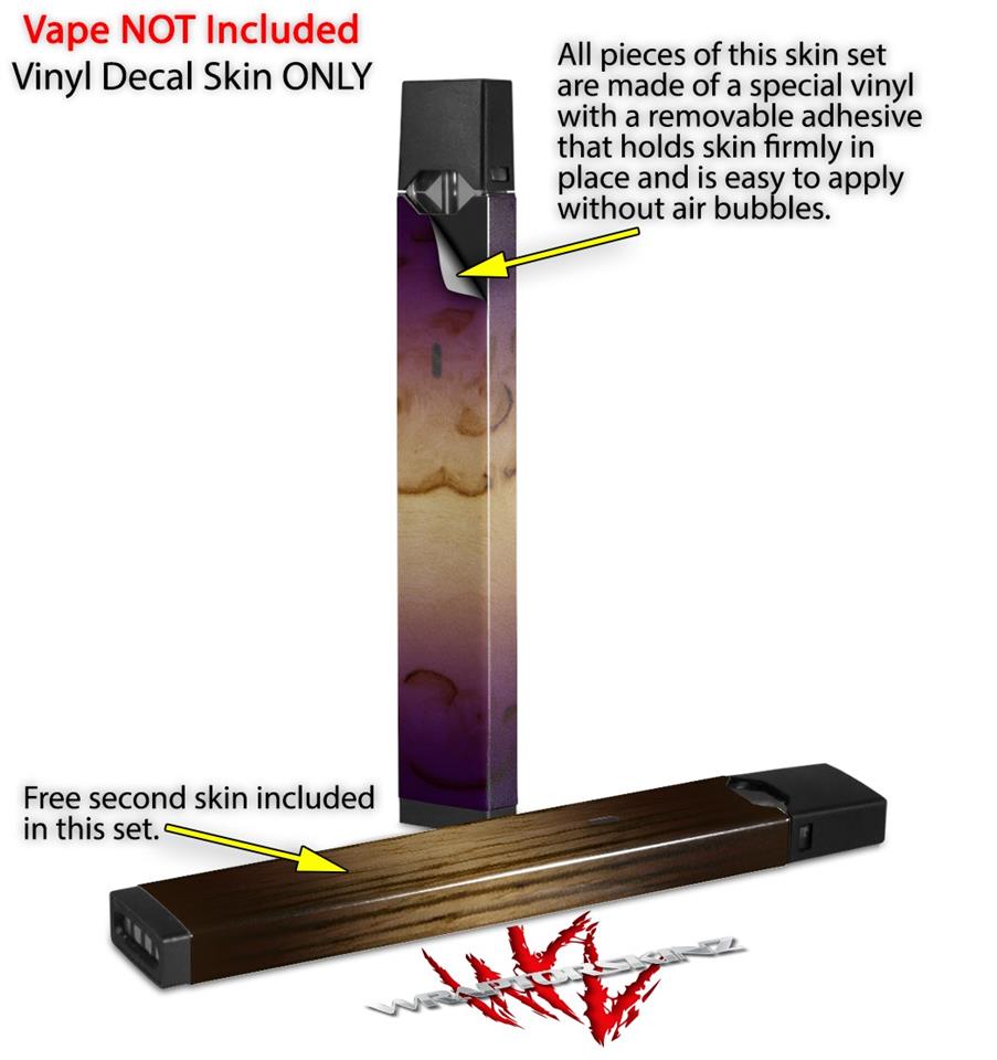 Skin Decal Wrap 2 Pack for Juul Vapes Exotic Wood Karelian Burl Burst Plum Purple JUUL NOT INCLUDED