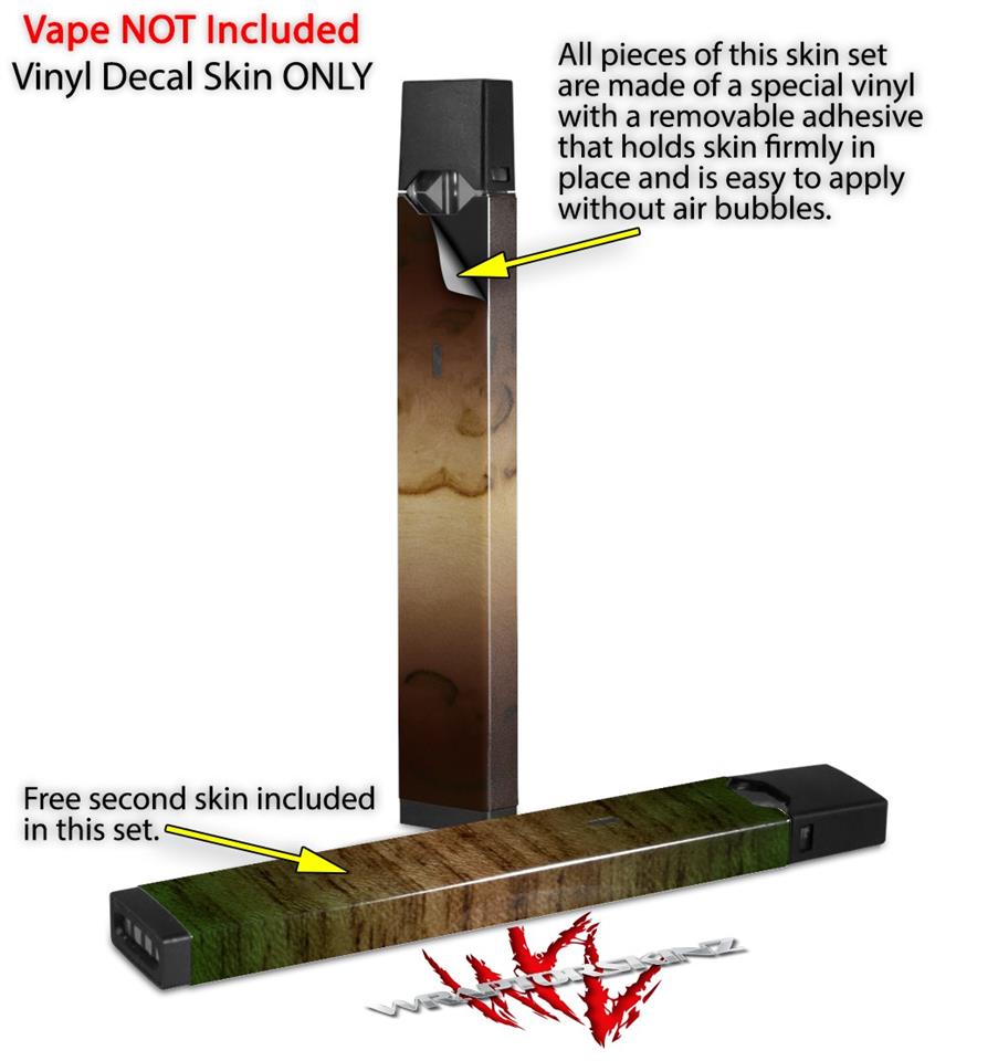 Skin Decal Wrap 2 Pack for Juul Vapes Exotic Wood Karelian Burl Burst Dark Mocha JUUL NOT INCLUDED
