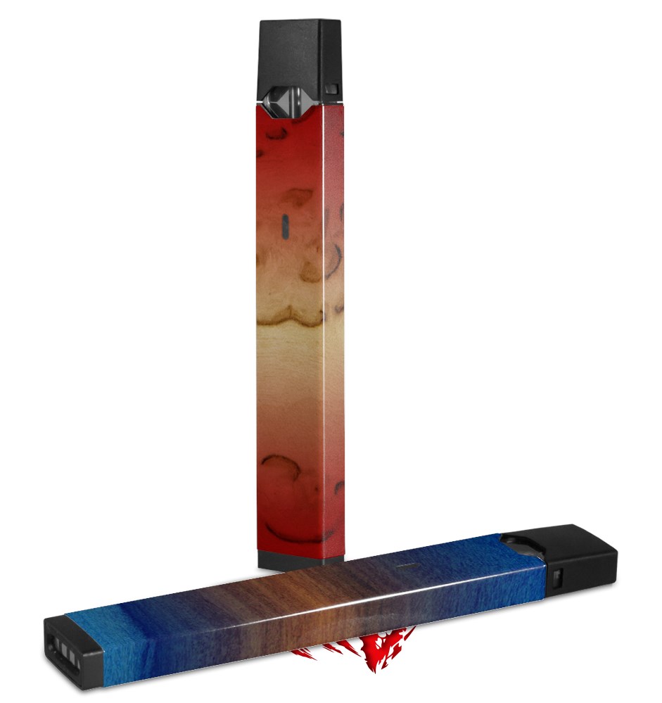 Skin Decal Wrap 2 Pack for Juul Vapes Exotic Wood Karelian Burl Burst Fire Red JUUL NOT INCLUDED
