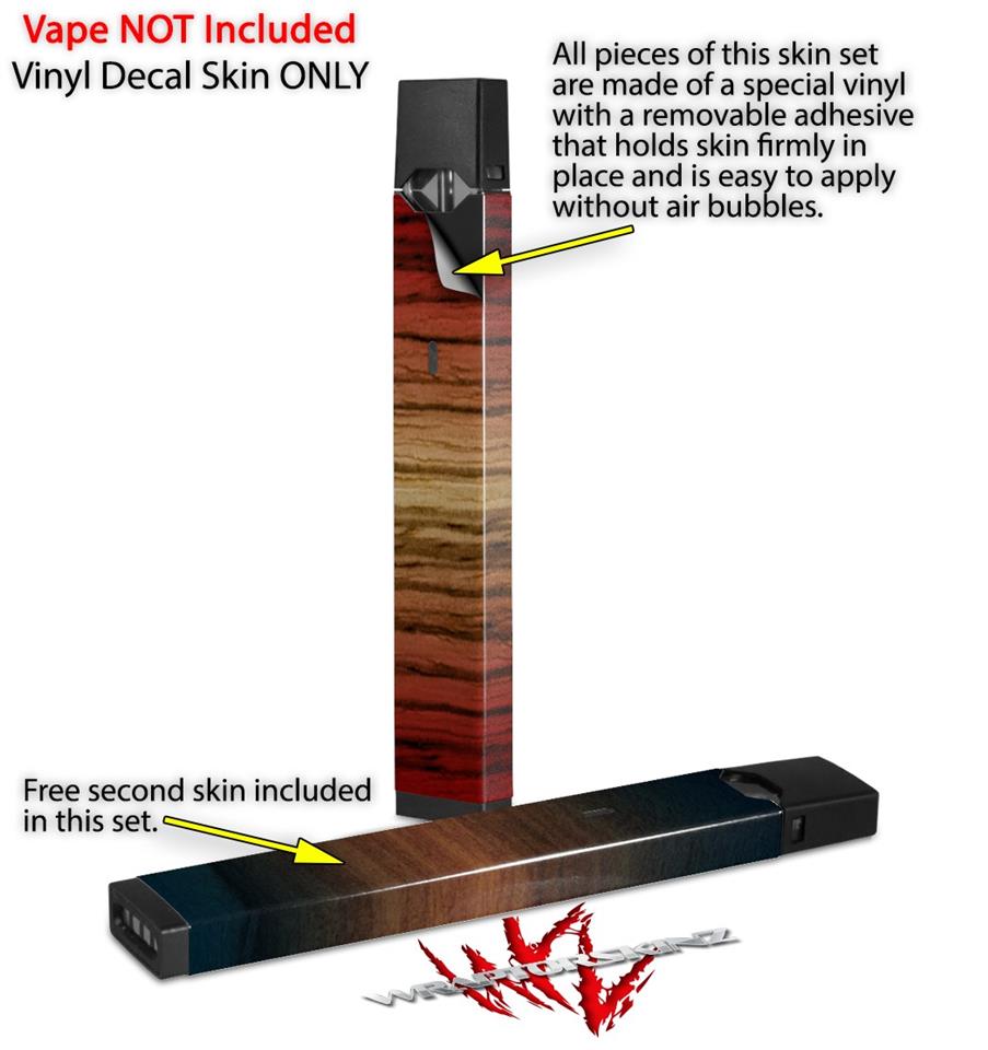 Skin Decal Wrap 2 Pack for Juul Vapes Exotic Wood Zebra Wood Burst Fire Red JUUL NOT INCLUDED