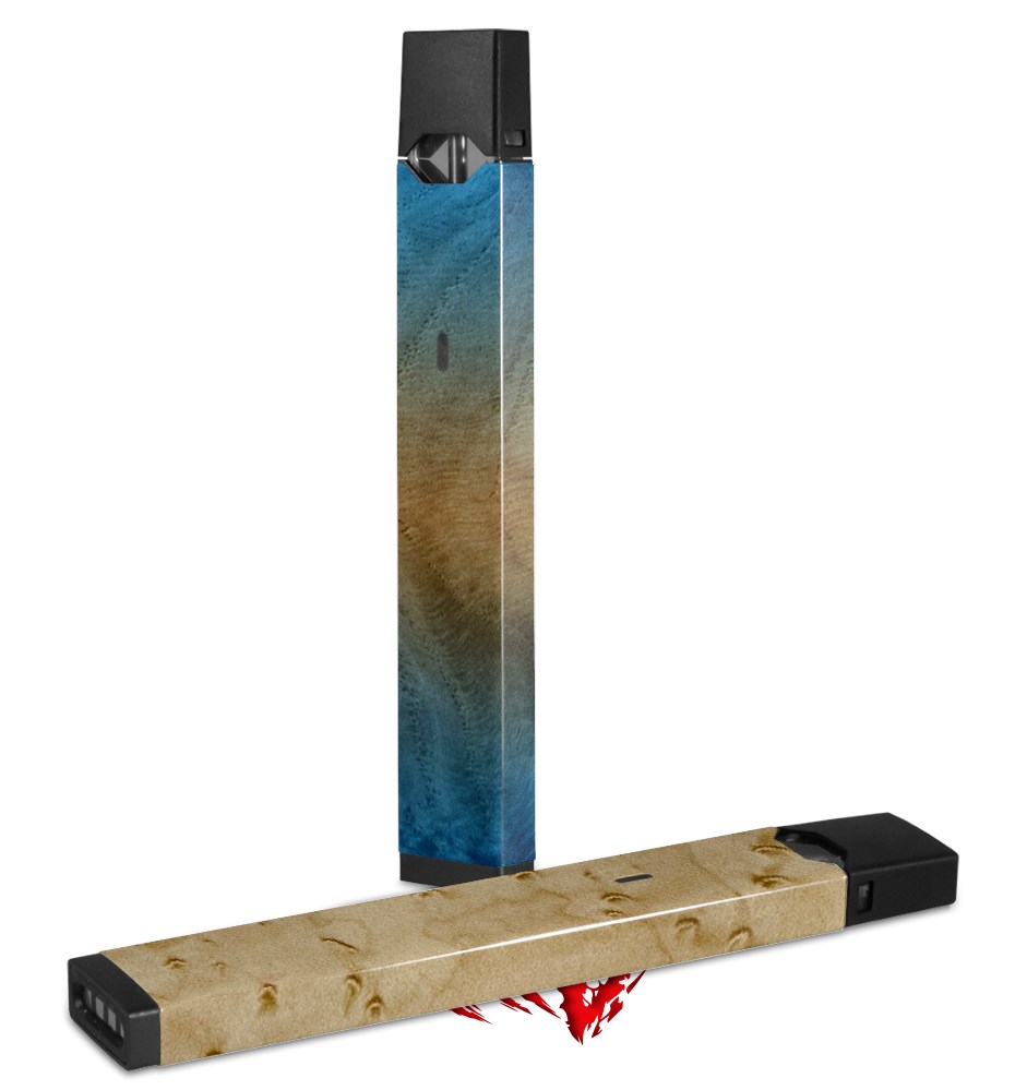 Skin Decal Wrap 2 Pack for Juul Vapes Exotic Wood White Oak Burl Burst Neon Blue JUUL NOT INCLUDED