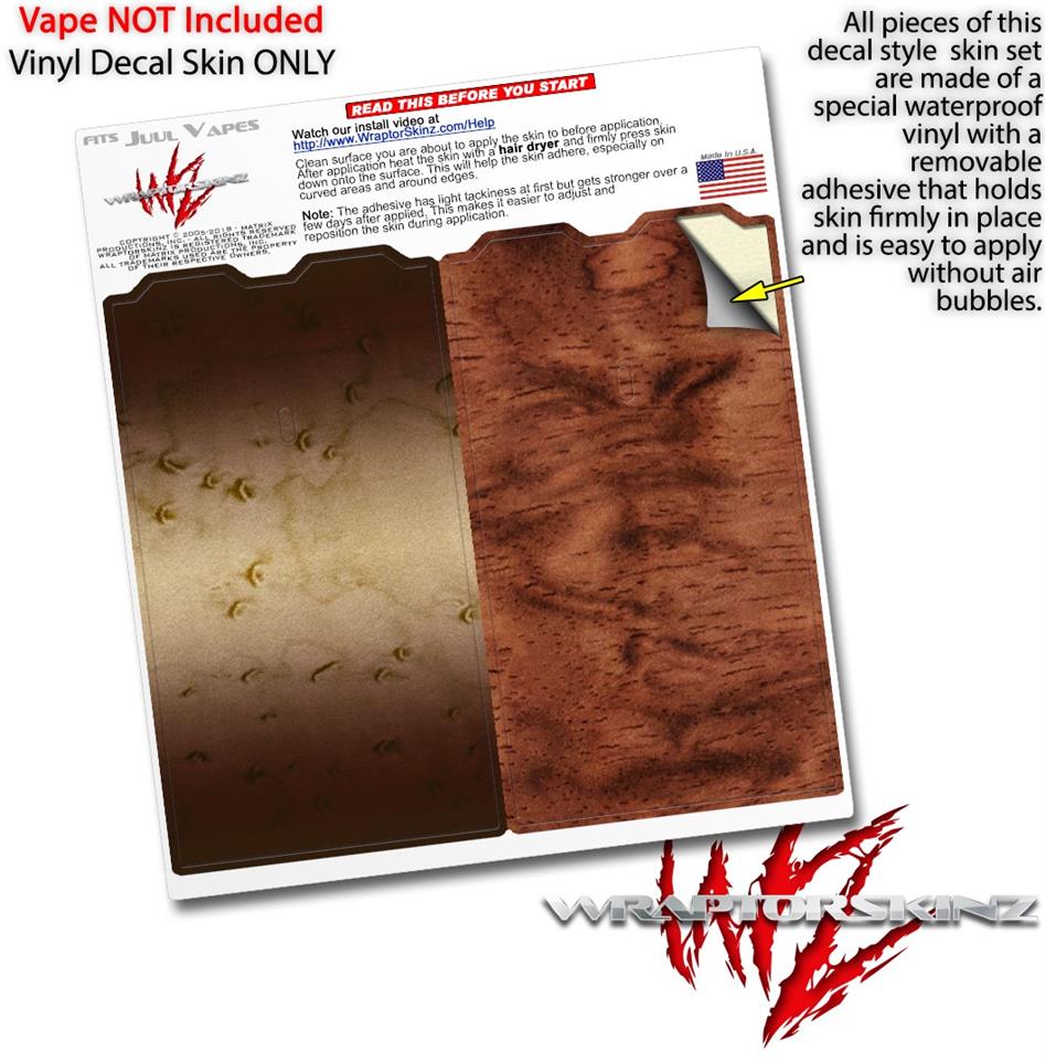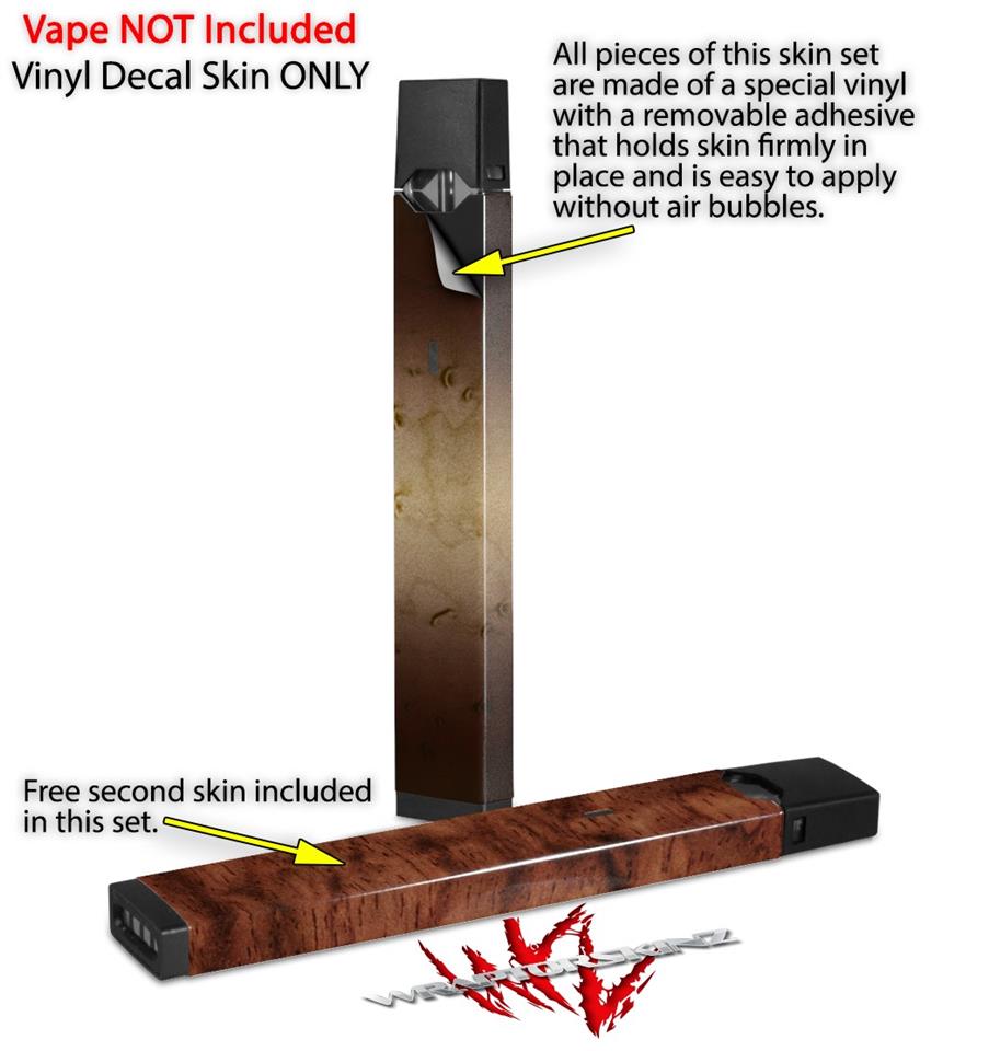 Skin Decal Wrap 2 Pack for Juul Vapes Exotic Wood Birdseye Maple Burst Dark Mocha JUUL NOT INCLUDED