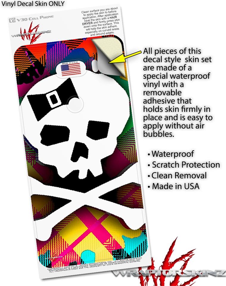 Skin Decal Wrap for LG V30 Rainbow Plaid Skull