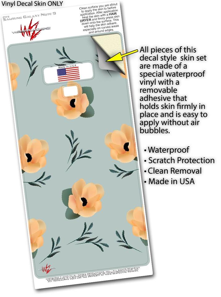 Decal style Skin Wrap compatible with Samsung Galaxy Note 9 Poppy Orange Light Blue