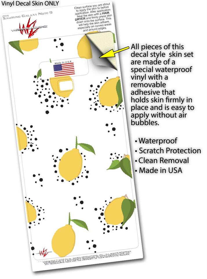 Decal style Skin Wrap compatible with Samsung Galaxy Note 9 Lemon Black and White