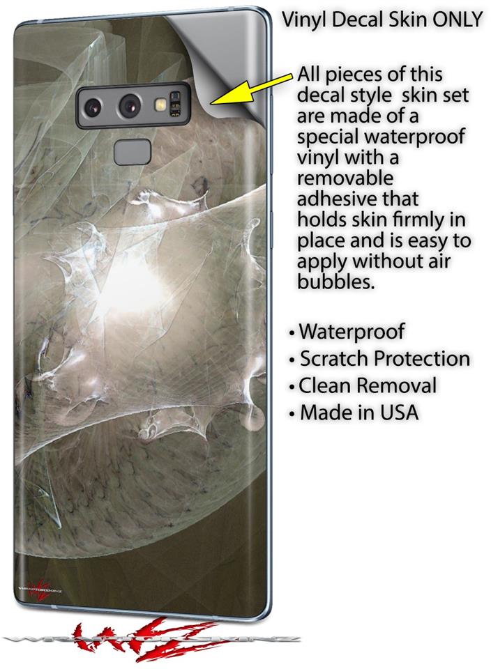 • Decal style vinyl skin covers back and part of the sides of Samsung Galaxy Note 9 - Not a hard case - Fits well with most Clear and TPU cases.