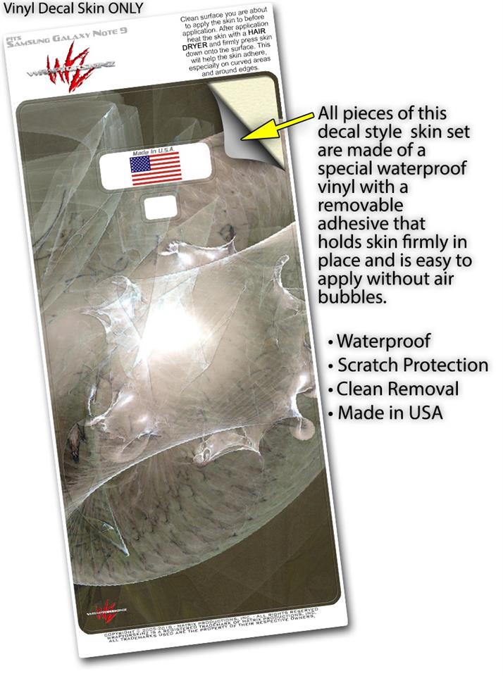 WraptorSkinz® skin wraps for the Samsung Galaxy Note 9 are printed using superb photo quality designs and vibrant colors printed with special fade resistant inks that last even in direct sun for years. WraptorSkinz are a composite of two layers of commercial grade materials. The bottom layer is a soft, flexible vinyl with a special removable adhesive that is easily positioned, applied without air bubbles. Next, we print the bottom layer with UV protected, fade resistant inks that deliver superb photo quality designs in vibrant colors. Finally, we bond a professional grade laminate over the entire Galaxy Note 9 skin adding a glossy protective finish. This product is not affiliated with or endorsed by Samsung.