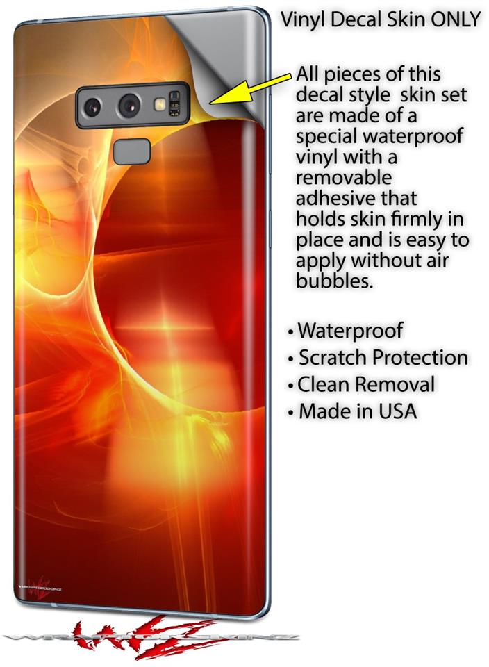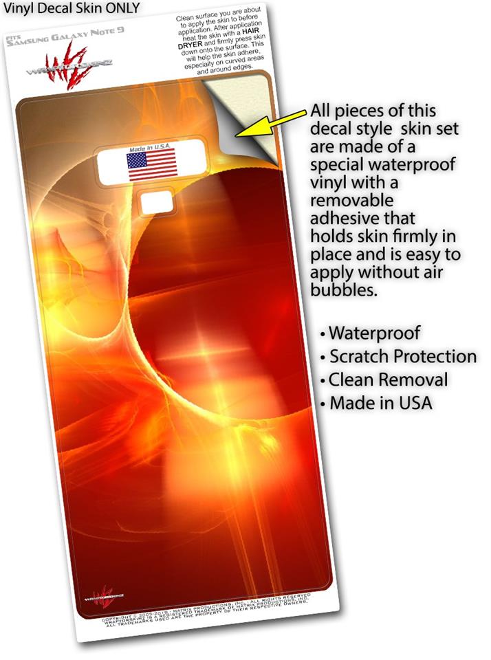 • Decal style vinyl skin covers back and part of the sides of Samsung Galaxy Note 9 - Not a hard case - Fits well with most Clear and TPU cases.
