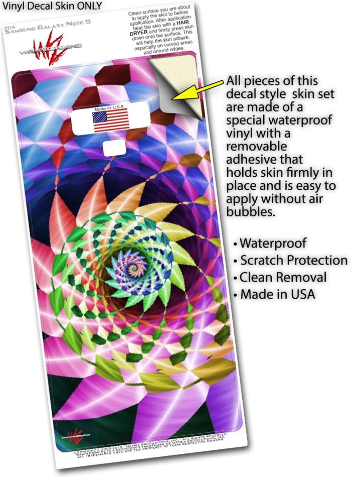 WraptorSkinz® skin wraps for the Samsung Galaxy Note 9 are printed using superb photo quality designs and vibrant colors printed with special fade resistant inks that last even in direct sun for years. WraptorSkinz are a composite of two layers of commercial grade materials. The bottom layer is a soft, flexible vinyl with a special removable adhesive that is easily positioned, applied without air bubbles. Next, we print the bottom layer with UV protected, fade resistant inks that deliver superb photo quality designs in vibrant colors. Finally, we bond a professional grade laminate over the entire Galaxy Note 9 skin adding a glossy protective finish. This product is not affiliated with or endorsed by Samsung.