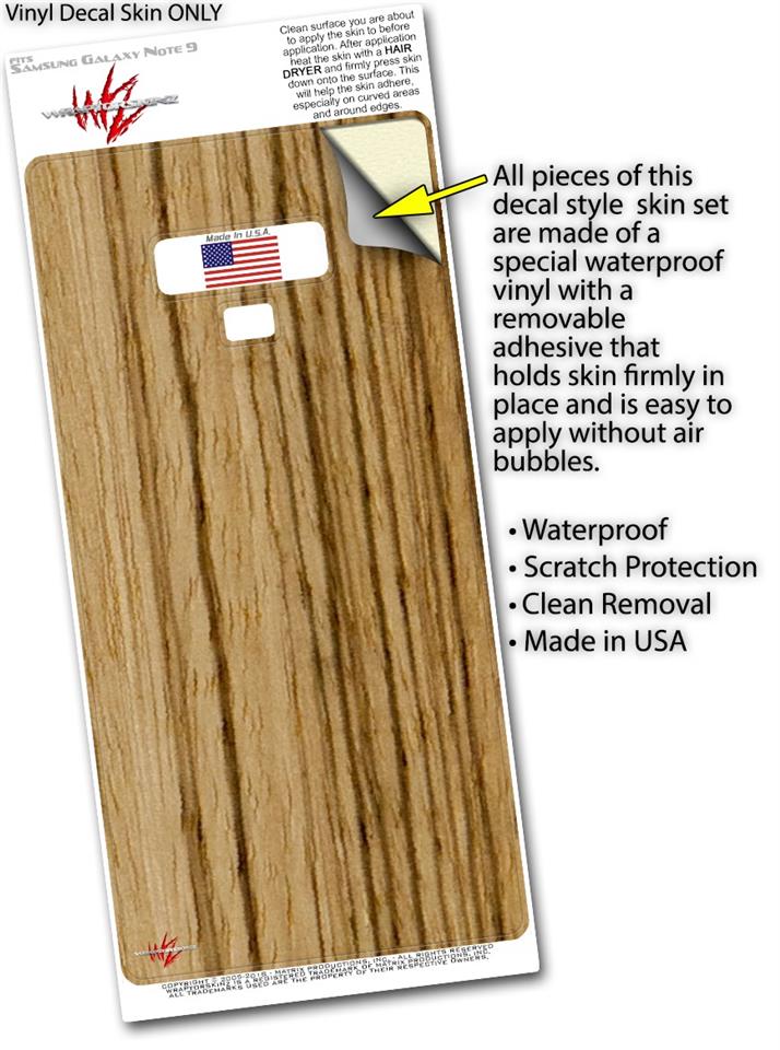 Decal style Skin Wrap compatible with Samsung Galaxy Note 9 Exotic Wood Zebra Wood Vertical