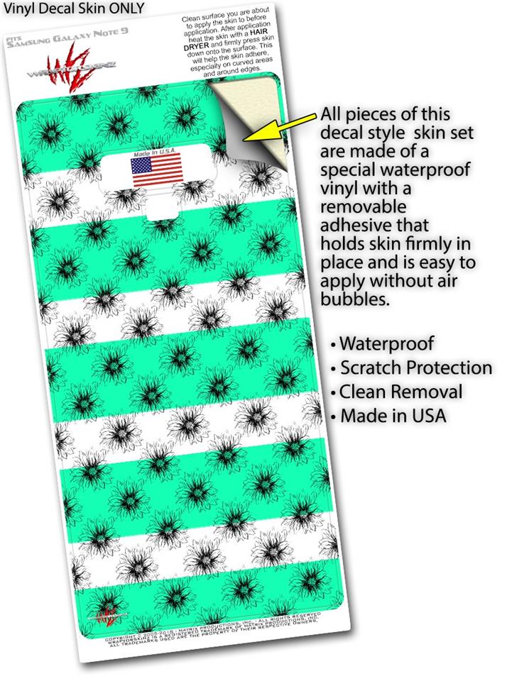 Decal style Skin Wrap compatible with Samsung Galaxy Note 9 Kearas Daisies Stripe SeaFoam