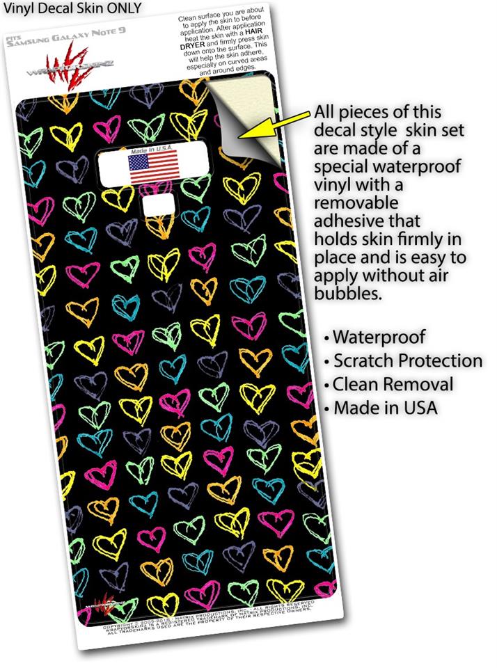 Decal style Skin Wrap compatible with Samsung Galaxy Note 9 Kearas Hearts Black