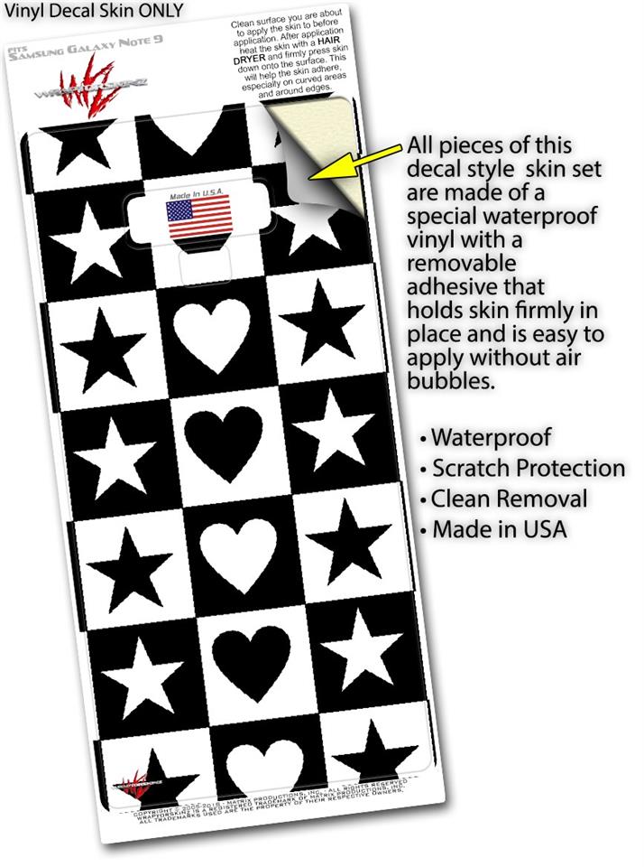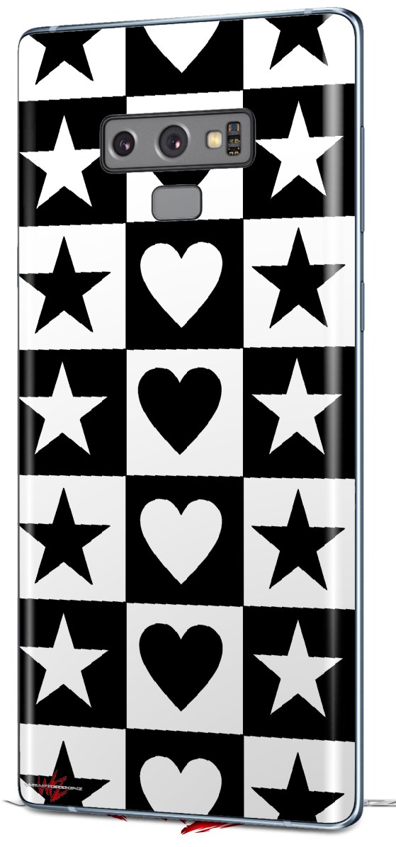 Decal style Skin Wrap compatible with Samsung Galaxy Note 9 Hearts And Stars Black and White