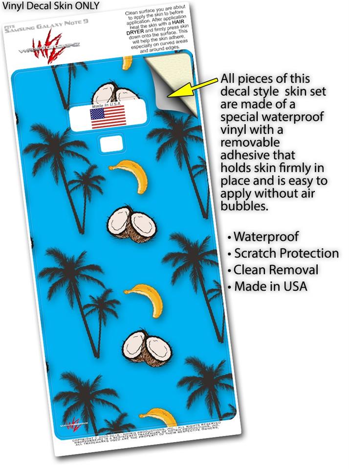 Decal style Skin Wrap compatible with Samsung Galaxy Note 9 Coconuts Palm Trees and Bananas Blue Medium